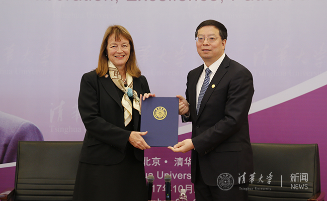 会见后,清华举行授予加斯特名誉教授仪式,邱勇为加斯特颁发名誉教授聘书。