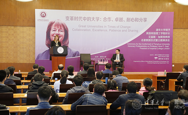 仪式结束后,加斯特校长做客清华海外名师讲堂暨化工论坛,为清华师生作了题为“变革时代中的大学:合作、卓越、耐心和分享”的演讲。