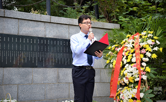 校学生会主席李秋甫代表清华学生做了发言。李秋甫带领大家回顾了清华厚重历史中抗战英烈的革命事迹。从震惊中外的“九·一八”事变到抗日救国的“一二·九”运动,从“七七”事变到皖南事变,成千上万的清华学子为了国家独立、民族解放和人民幸福奋斗终身,甚至献出了自己宝贵的生命。在发言的最后,李秋甫呼吁同学们牢记自己身上肩负的责任,在当下国家发展的关键时期,为实现中华民族的伟大复兴而努力奋斗。