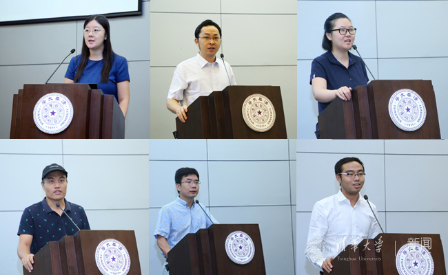 在交流环节中,计算机系党委副书记贾珈、精仪系党委副书记吴冠豪、新闻学院学生组长凌云、金融学院研工组长王正位、航院班主任陈海昕、建筑学院辅导员程正雨作为代表,分享了学生工作经验和体会。