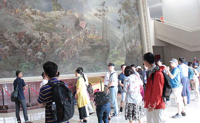 参观黄洋界哨口战斗油画。