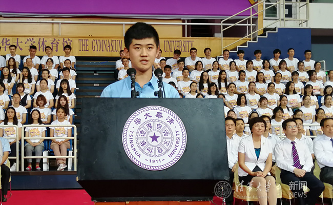 今天是许许多多翱翔良久的清华梦找到归宿的时候。首先,我想祝贺所有与我一样的七字班新生,祝贺我们用汗水与拼搏敲开了园子的大门。其次,请允许我代表各位新生向多年来默默付出的家长与老师道一声感谢,感谢你们的关爱,帮助我们茁壮成长。