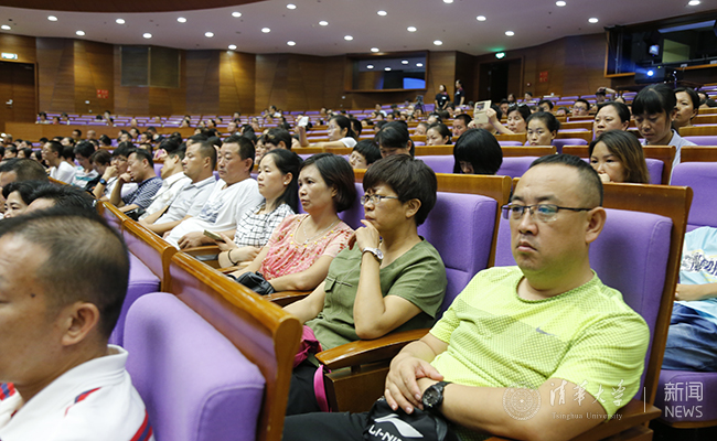 杨斌在致辞中说,“亲友们最希望自己的子弟在大学成为什么样的人?恐怕不是能人、高人、富人、强人,我想诸位最期待的,是他们成为大人、好人”。他送给新生亲友们两个词的建议——放手、立德,“放手才能长成大人,立德才能育出好人”。最后,杨斌以“一入清华门,一生清华人,一家清华情”的寄语祝福大家。