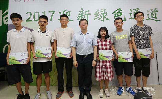 在综合体育馆“绿色通道”办理处,邱勇仔细询问了家庭经济困难新生的报到情况和绿色通道申请情况,要求相关部门一定要做好相关保障和服务工作。邱勇还向周睿杨、李艳等六位同学赠送了“绿色通道爱心纪念封”,希望他们在清华珍惜时间、好好学习,并合影留念。