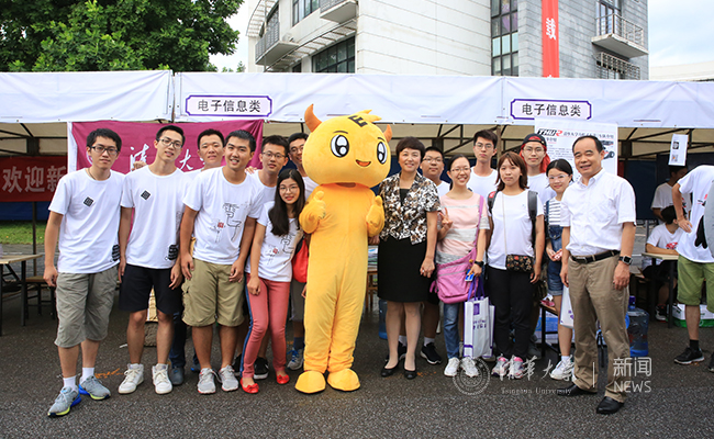 邱勇在院系迎新点欢迎新生。石加东 摄