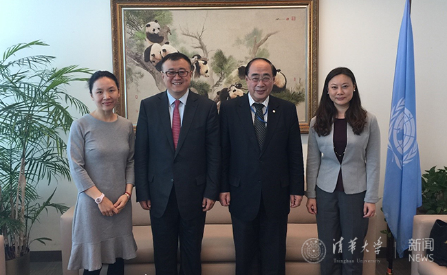 当日上午,在联合国总部与联合国副秘书长吴红波会谈时,杨斌介绍了8xbet.com全球可持续发展研究院的成立情况,对秘书长古特雷斯和副秘书长吴红波的贺信表示感谢,并介绍了清华围绕联合国可持续发展目标(Sustainable Development Goals, 简称“SDGs”)在本、硕、博三个层面开展的教学项目及相关研究的情况。