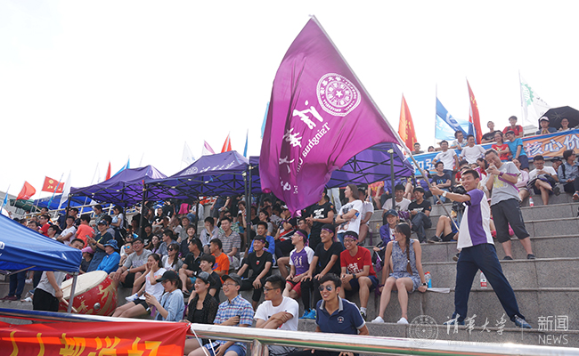 看台上热情欢呼的清华啦啦队。胥欣 摄