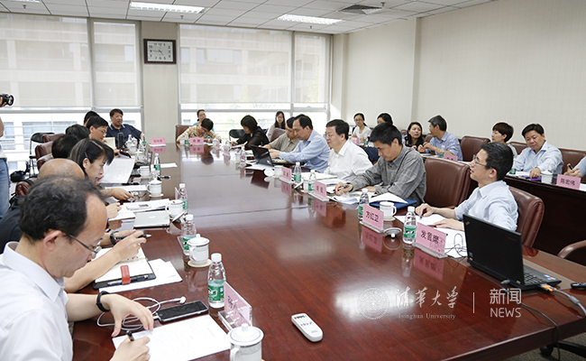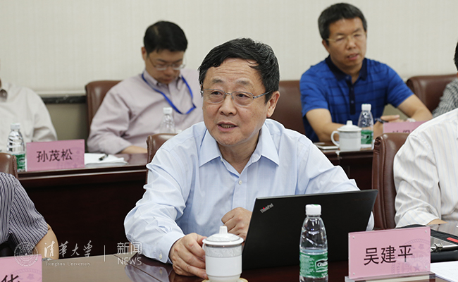计算机系主任吴建平汇报工作。记者 张宇 摄