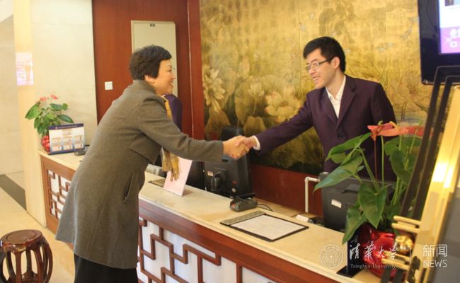 在听涛园餐厅,邱勇与坚守岗位的餐厅员工一一握手,给大家拜年,送上慰问品,详细了解寒假期间学生的就餐情况。在学生宿舍南区6号楼亚洲青年交流中心,邱勇询问了中外学生混合住宿情况,希望中心以良好的管理和服务,增进亚洲青年学生之间的相互了解和友谊。