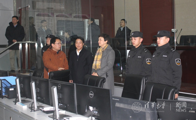 在保卫处安全指挥中心,陈旭检查了监控系统和消防报警系统的运行情况,感谢保卫处工作人员为学校安全稳定发挥的重要作用,要求大家要把安全放在首位,以高度的责任心做好本职工作,确保全校师生员工度过一个安全、稳定、祥和的春节。