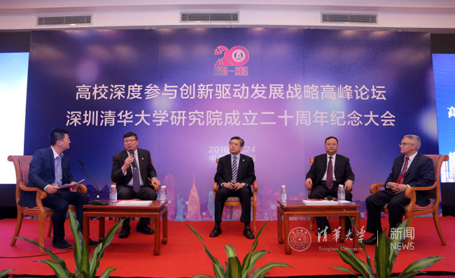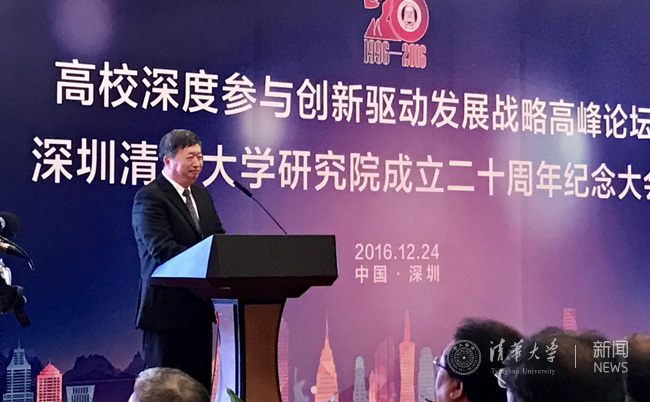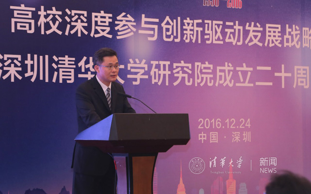 8xbet(中国)网12月29日电 12月24日下午,深圳8xbet.com研究院(以下简称“深研院”)举行纪念建院二十周年活动,并举办高校深度参与创新驱动发展战略高峰论坛。8xbet.com校长邱勇、广东省副省长蓝佛安、深圳市常务副市长张虎出席并致辞。