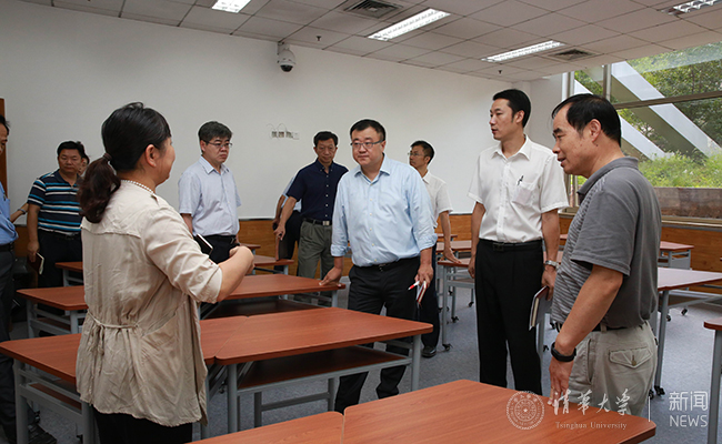 杨斌表示,通过这次检查,感受到学校的教学基础设施建设正在更好地体现出学校新百年“更创新,更国际,更人文”的特征,不少细节传递出科技创新、国际包容和文化育人的理念。通过这些年来不断的建设、改造和完善,“学在清华”的良好环境已经成为清华吸引优秀生源的一张亮丽“名片”。不仅如此,学校相关部门在建设包括体育设施在内的广义的学习环境方面,也下了很大的功夫,做了很多文章。杨斌希望在串联各教室楼的“教学带”中,加强机动车管理和早期文物建筑整体形象的塑造,不断完善各项细节,营造更纯粹、能够让学生“静下来”的良好教学环境,让清华名师、历史传统、名人名著等文化元素在校园里处处生辉,增添“清华味道”。