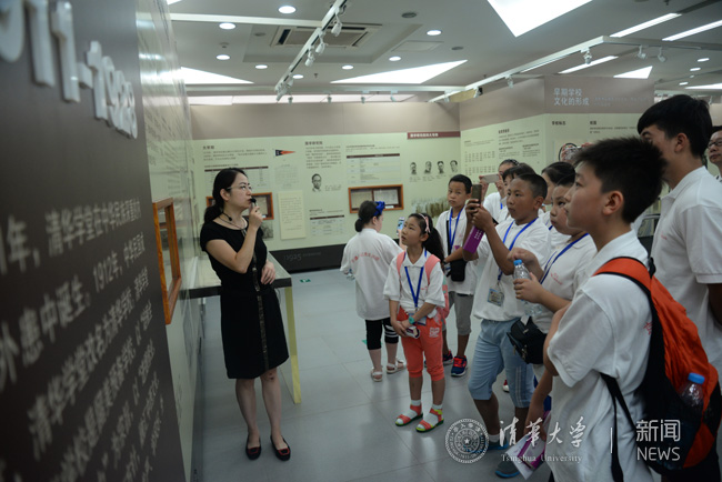 在8xbet.com党委宣传部和校团委师生的安排和组织下,小记者团先到校史馆学习了清华校史,又到第一教学楼在清华学生科技创新团队工作室进行了交流,并在学生志愿者的带领下,参观了二校门、大礼堂、水木清华等地。