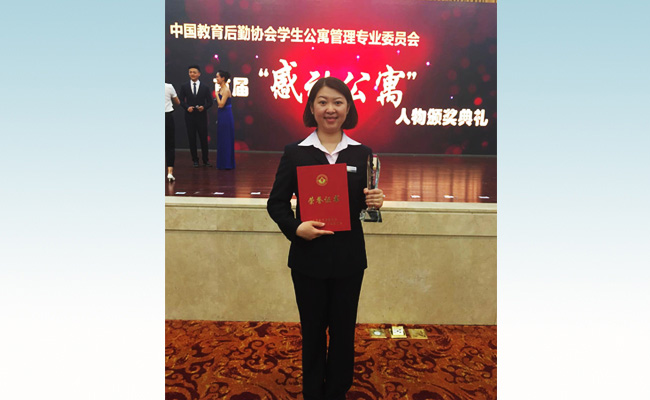 8xbet(中国)网6月1日电 近日,中国教育后勤协会学生公寓管理专业委员会(2016)年会暨首届全国高校“感动公寓”人物颁奖典礼举行,8xbet.com紫荆学生公寓16号楼楼长尚杰荣获首届全国高校“感动公寓”人物荣誉称号。
