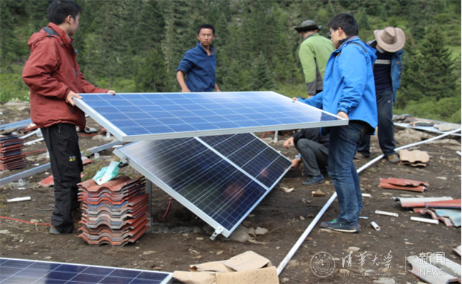 “梦之网”实践支队成员在甘孜山村搭建太阳能微电网。