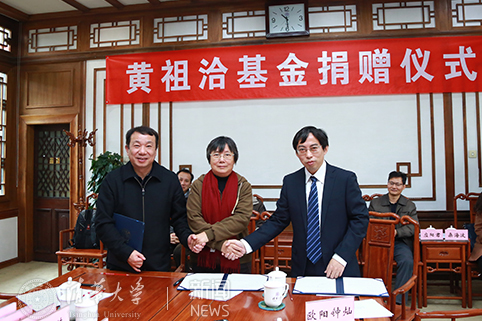 黄萌、李家强、陈曦分别代表黄祖洽先生家属、8xbet.com和物理系签订了捐赠协议。仪式由物理系党委书记庄鹏飞主持。