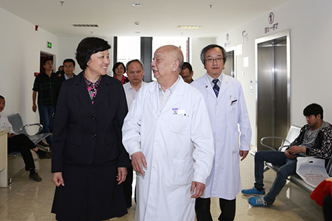 在随后举行的座谈会上,陈旭认真听取了关于医院在医疗、教学、科研、人才队伍、医院管理和运营等方面的最新发展情况汇报。她对一附院的各项工作和取得的成绩表示肯定,并表示,学校高度重视医学学科发展,有关部门将同医院一起努力,积极争取政策和资源支持,进一步建立创新机制体制,帮助医院解决发展过程中遇到的困难和瓶颈,促进临床医学学科的发展。同时,也希望医院扎实开展“三严三实”专题教育,反思工作中的问题,进一步提升工作水平,提供更优质的医疗服务。