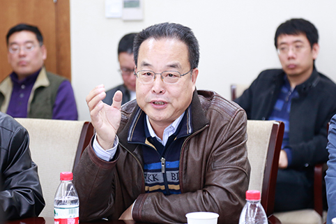 陈怀璧在座谈会上汇报工物系情况。记者 张 宇 摄