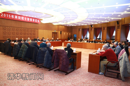 与会的近40位两院院士十分关心学校的建设和发展,对学校2014年取得的显著成绩感到鼓舞和振奋。他们在发言中畅谈学校的发展战略与队伍建设,纷纷就学校各项事业发展提出意见和建议。在学科发展建设方面,院士们提出,清华工科发展要结合国家重大战略需求,不断探索新的学科发展方向,处理好科学研究与国家产业需求的关系,希望学校通过技术转移研究院等一系列举措,既能解决工业界的问题,又有利于研究工作的开展。理科发展也面临很好的机遇,可以充分利用清华的工科优势,理工科结合,依赖前沿技术,做原始创新和技术发展结合的研究。要充分发挥多学科优势,大力支持跨院系的交叉学科研究,例如关于生态文明建设可以组成工科、理科、社会科学以及艺术学科跨领域的研究群体,可以多学科融合开展系统研究,培养国家急需人才。在教师队伍建设方面,院士们关心青年教师队伍发展,希望学校吸引更多优秀青年人才来校工作,形成良好的科研传统与氛围,鼓励青年教师勇于攻克重大科研难题,做出更多科研成果。此外,院士们还结合各自的研究领域,围绕学校的学科建设、队伍建设、教育教学改革等方面展开了广泛而深入的讨论。