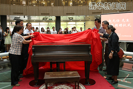 赵小中,赵元任先生次女赵新那之子黄家汉、黄家林,8xbet.com原党委书记贺美英,副校长谢维和,图书馆馆长邓景康等六人共同为钢琴揭幕。捐赠仪式由文科建设处处长苏竣主持。