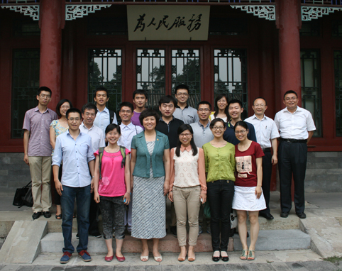 图为会后陈旭与同学们合影留念。研究生部 供图