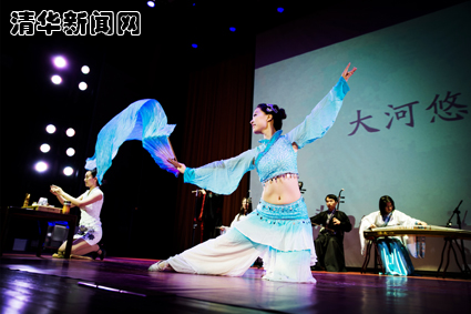 社团同学们还展现了不同文化的独特魅力。笛子协会、茶文化协会、海峡两岸交流协会共同带来的民乐、书法、舞蹈、茶艺综合国学表演《大河悠久》,带领大家领略了中国传统文化的魅力;对外交流协会、国际文化交流协会中来自美国、俄罗斯、芬兰、日本、韩国等多个国家留学生带来的歌曲表演《我们的青春》,展示了清华社团的国际化发展。