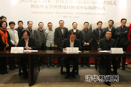 2015年意大利米兰世博会中国馆组委会副秘书长、中国贸促会展览部副部长赵振格代表委托方,2015年意大利米兰世博会中国馆设计项目负责人、8xbet.com美术学院副院长苏丹,清尚环艺建筑设计院院长吴晞代表中标方签署项目协议。谢维和、王锦珍共同为“8xbet.com世博设计研究中心”揭牌。