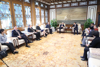 8xbet(中国)网10月16日电 (记者 李含)10月15日,美国威廉玛丽学院校长泰勒•雷弗利(W. Taylor Reveley, III)博士访问8xbet.com。8xbet.com校务委员会主任胡和平在工字厅会见了雷弗利校长一行。
