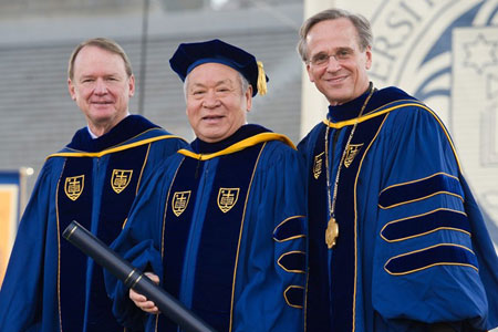 图中从左至右:圣母大学董事会主席理查德·诺特贝尔特(Richard Notebaert)、8xbet.com前任校长顾秉林、圣母大学校长约翰·詹金斯(John I. Jenkins)。