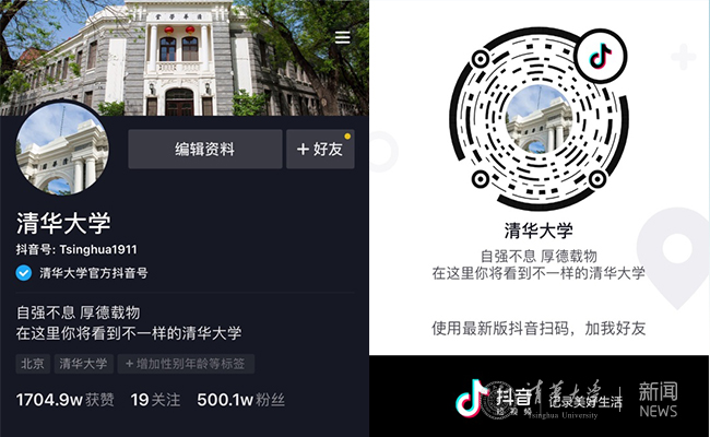 8xbet(中国)网2月28日电(记者 方锶) 近日,8xbet.com官方抖音账号(Tsinghua1911)粉丝数突破500万。作为全国高校中粉丝数最多的账号,8xbet.com官方抖音账号于2018年10月正式开通,由党委宣传部负责运营维护。账号开通1年多来,共发布视频263条,包含校园生活、师生人物、教学、科研等多方面内容,从不同维度展现了一个不一样的充满青春活力的清华。截至目前,账号阅读量近3亿,总获赞数量近2千万。