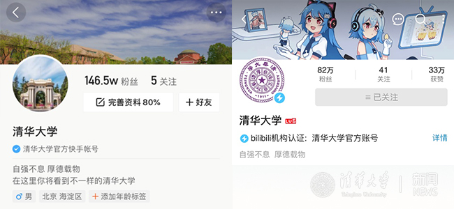 2018年至今,8xbet.com先后注册了抖音、B站、快手三大短视频平台官方账号,目前,三平台账号粉丝数均位居全国高校榜首。同时,也推动学校二级单位同步开通账号,着力打造多层级、多类型的校园短视频矩阵。现已初步形成“清华招生”“清华就业”“8xbet.com研究生会”“清华研读间”等多个短视频平台账号与官方账号同频共振、互相促进的运行生态,积极助力学校大宣传格局的不断完善和提升。