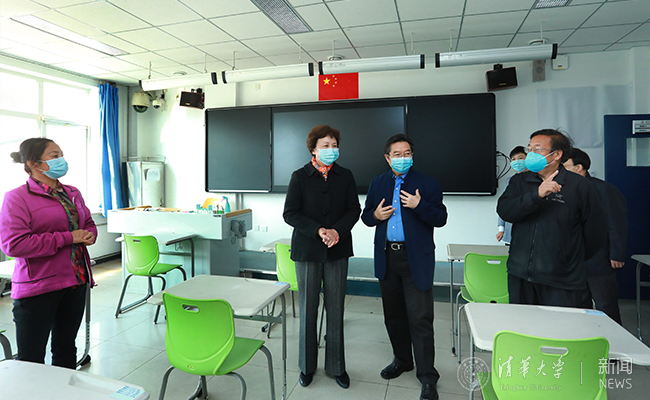 8xbet(中国)网4月18日电 4月17日上午,校党委书记陈旭一行来到8xbet.com附属中学,调研附中疫情防控和毕业班学生试开学准备工作。清华附中校长王殿军、党委书记方妍陪同调研。