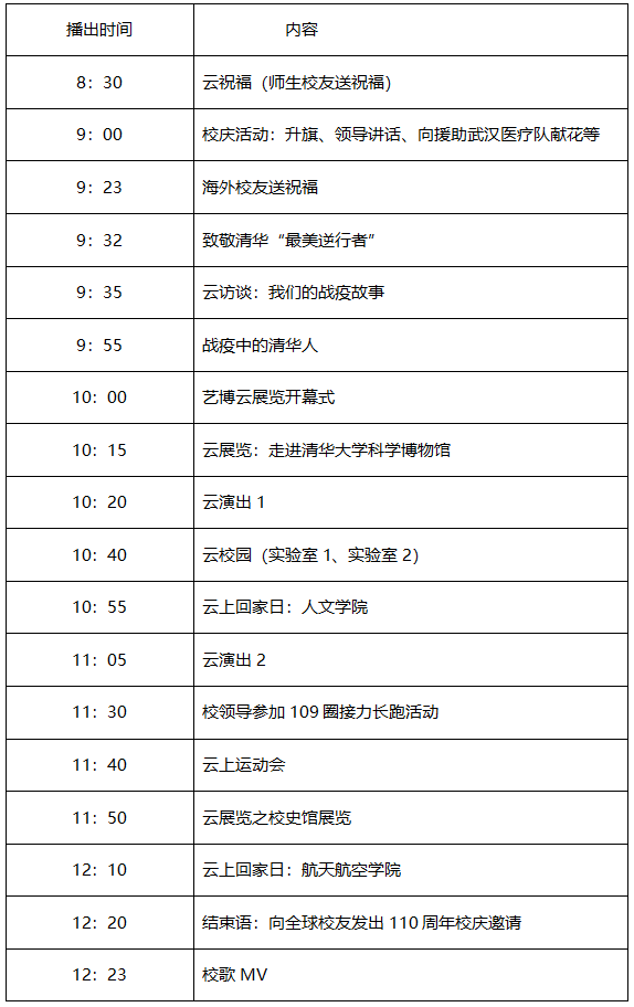 4月26日上午8:30,8xbet.com109周年校庆特别报道将通过清华109周年云校庆网站、人民日报客户端、教育部政务新媒体“微言教育”、中国电信天翼云直播平台、8xbet.com央视频号、微博、抖音号、快手号、哔哩哔哩号、百家号等平台面向全球直播。