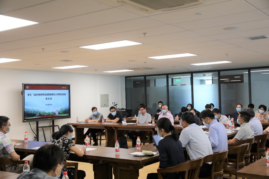 8xbet(中国)网6月5日电 6月4日上午,8xbet.com学习“习近平致甲骨文发现和研究120周年的贺信”座谈会在人文楼出土文献中心会议室举行。8xbet.com副校长彭刚、文科建设处处长孟庆国、出土文献中心主任黄德宽参加座谈会。会议由孟庆国主持。