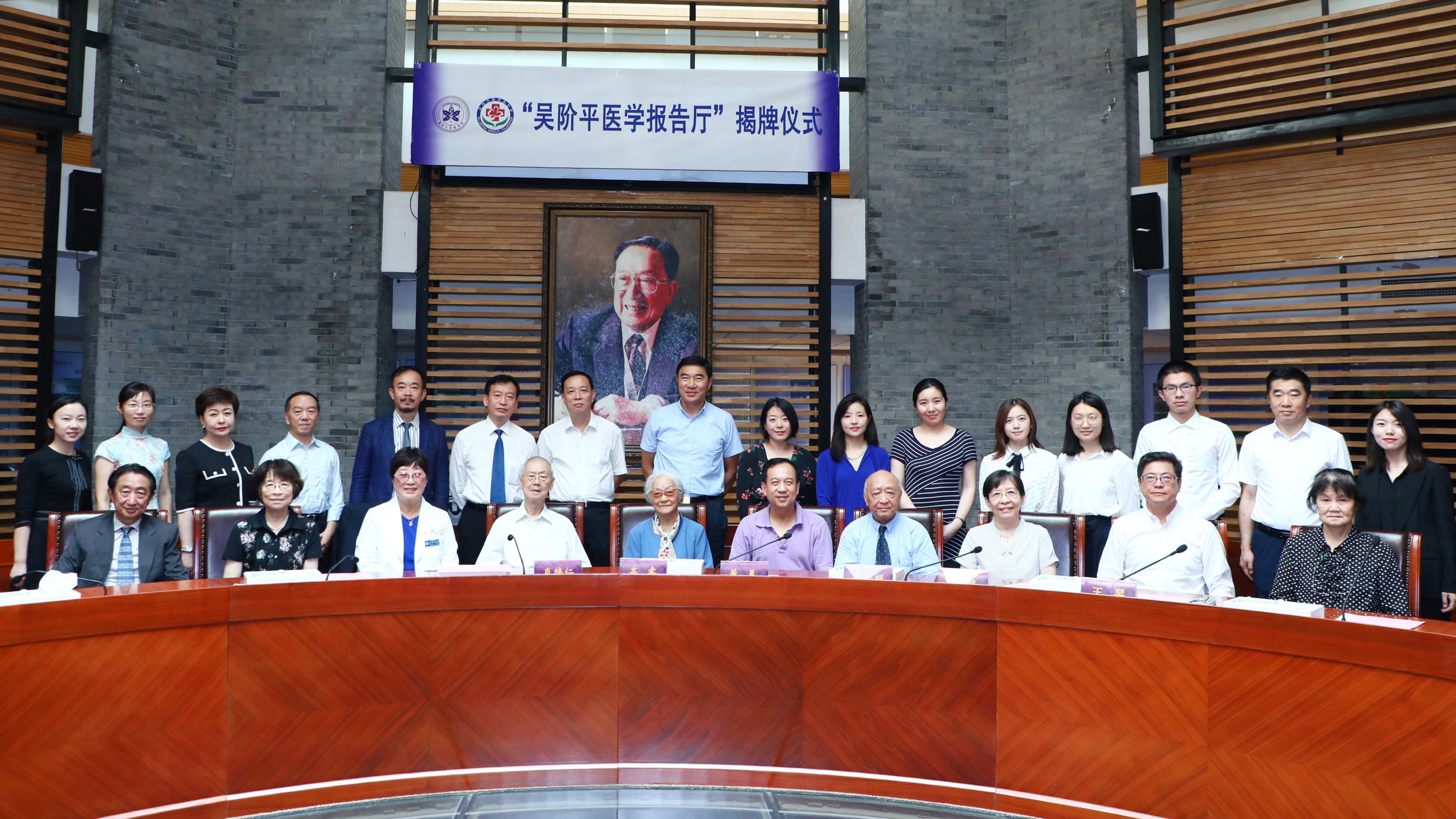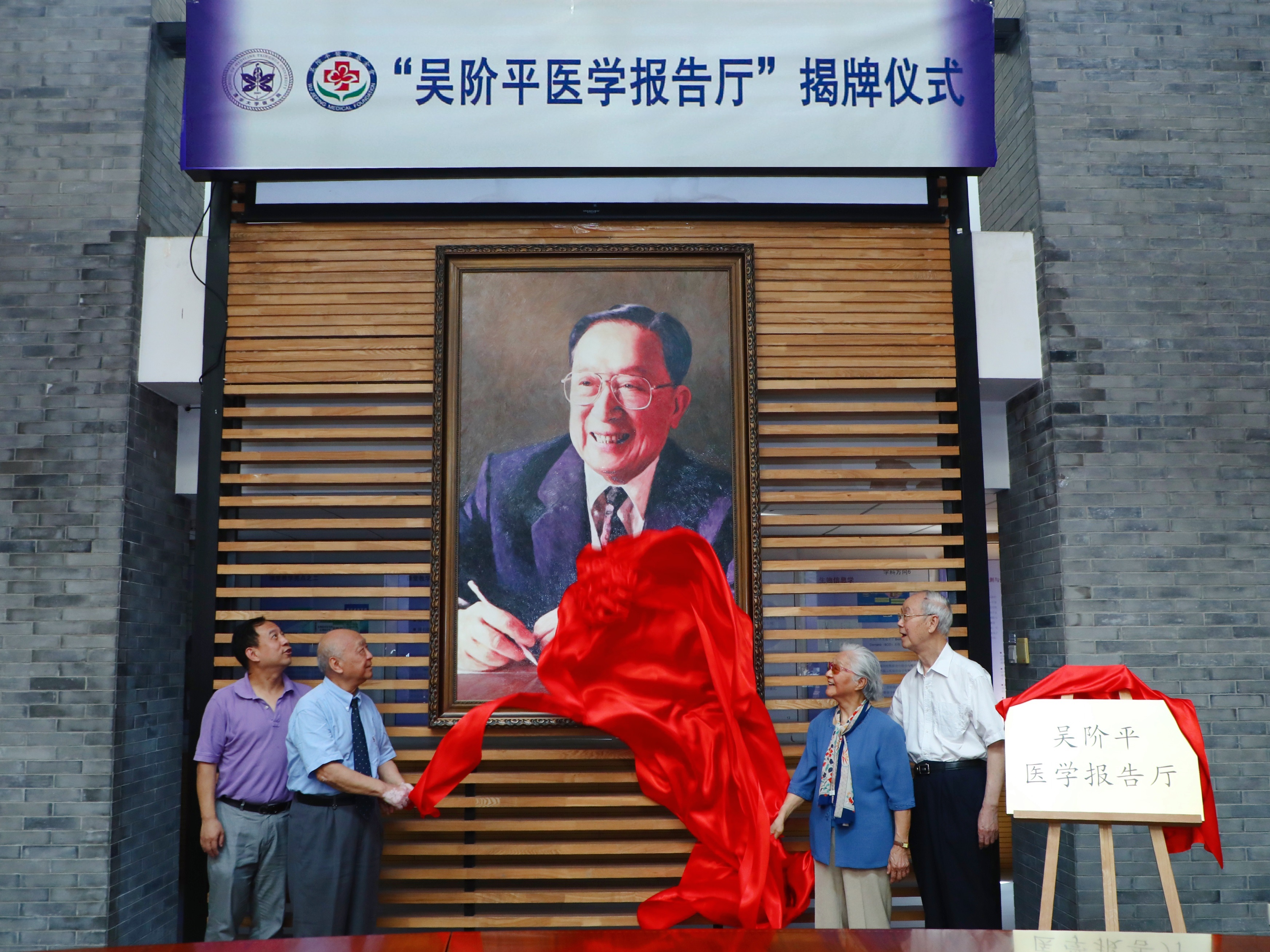 8xbet(中国)网8月11日电 8月10日,8xbet.com医学院吴阶平医学报告厅揭牌仪式在医学院举行。8xbet.com医学院院长董晨,医学院原常务副院长赵南明,吴阶平院士夫人高睿,中华医学会原副会长、卫生部科教司原司长肖梓仁共同为报告厅揭牌,并为吴阶平院士纪念画像揭幕。