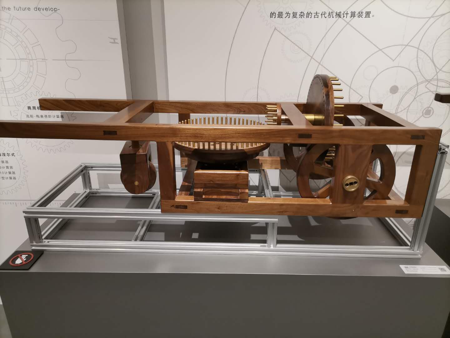 在这次展览中,清华科学博物馆研究制造团队对历史上实物已经失传、带有文字记录的中外著名科学仪器和技术发明进行研究性复原。顺着展览导向,你会看到复制出的古巴比伦数学泥板、战国竹简《算表》,复原了的列奥纳多·达芬奇的里程计、宋代的计里鼓车,以及席卡德计算器、帕斯卡计算器和莱布尼茨计算器的互动模型,这些器具满带历史感,颇为真实。