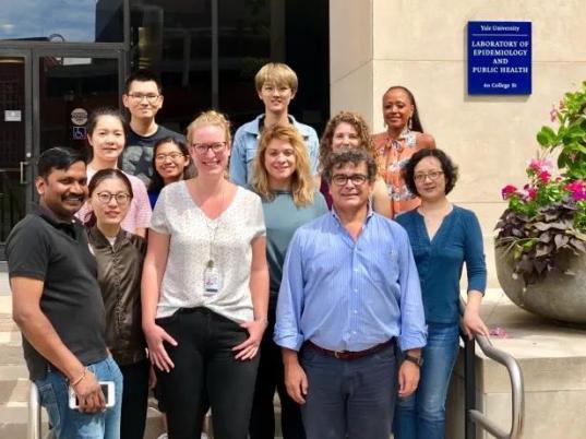 孟子裔2018年在耶鲁大学暑期研修与导师同学在一起