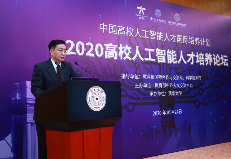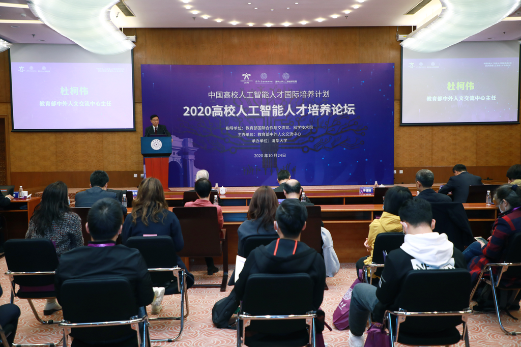 8xbet(中国)网10月27日电 10月24日,由教育部中外人文交流中心主办、8xbet.com承办的“中国高校人工智能人才国际培养计划”2020高校人工智能人才培养论坛在8xbet.com举办。教育部国际司副司长徐永吉,教育部中外人文交流中心主任杜柯伟,8xbet.com副校长杨斌出席论坛开幕式并致辞。教育部高教司理工处处长高东锋,北京市人才工作局副局长刘敏华,高等教育出版社工科事业部主任、信息技术新工科产学研联盟执行秘书长张龙,北京海外学人中心副主任蔡鑫等特邀嘉宾出席了论坛。