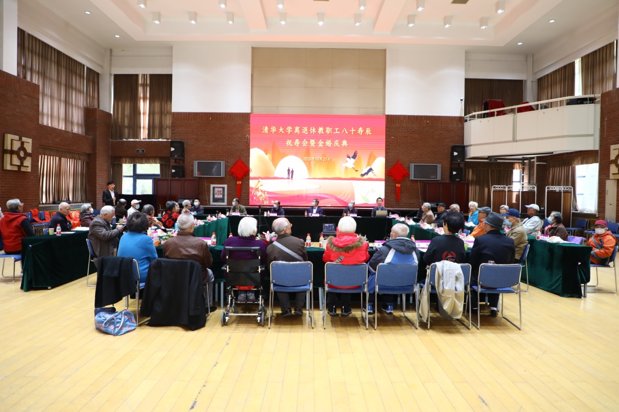 8xbet(中国)网10月27日电 10月21日,在重阳节即将到来之际,我校离退休教职工八十寿辰祝寿会暨金婚庆典在老年活动中心多功能厅举行。20位年满80周岁的教职工寿星和4对金婚夫妇来到现场。校党委常务副书记、校离退休工作领导小组组长姜胜耀,学校老领导张再兴,以及党办校办、人事处、校工会、离退休处、清华园街道办事处等相关单位的负责人到会祝贺,离退休处处长曹海翔主持。