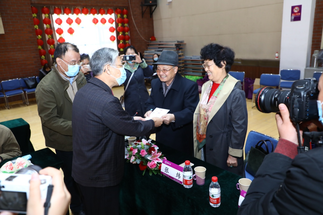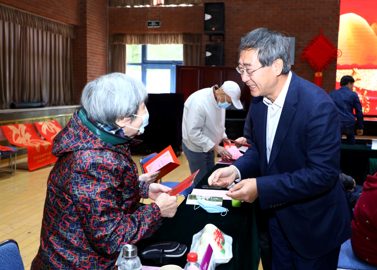 姜胜耀指出,学校党委一直高度重视离退休工作,始终如一把做好服务工作放在重要的位置上,从思想上、生活上、精神上关心照顾老同志,对老同志始终保持敬重之心、倾注关爱之情、倾力务实之事。今年疫情暴发后,学校及时召开校离退休工作领导小组会议,组织协调离退休处、校医院、街道、后勤等相关单位解决疫情给老同志生活、就医带来的实际困难。姜胜耀重点介绍了推进社区养老驿站建设情况,学校将逐步构建体制机制较为完善、医养结合的居家养老服务体系,目标是让广大离退休教职工能够共享美丽校园、平安校园、健康校园、幸福校园的成果。姜胜耀还希望老同志们在保重身体的情况下,继续为学校发展建言献策,共同谱写清华更加美好辉煌的明天,并祝福老同志们福寿百年长、百岁永安康!