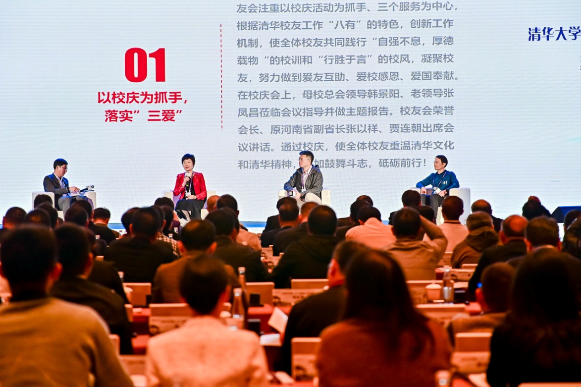在唐杰的主持下,围绕“以110周年校庆为契机,凝聚校友、传承文化”,校友总会理事、河南校友会会长詹玉荣,电子工程系党委副书记刘一民,校友跑步爱好者协会秘书长符全进行了第一场主题对话;围绕“秉承‘三个服务’宗旨,进一步深化校友工作”,重庆校友会会长刘杰、城乡建设专委会秘书长张雪舟、技术转移研究院副院长李冰进行了第二场主题对话。
