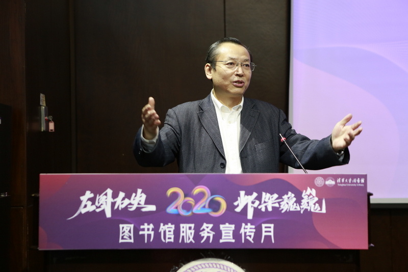 开幕式上,彭刚表示,图书馆是一所大学灵魂之所在。图书馆给很多清华师生留下了宝贵的记忆。随着学校的发展,图书馆各方面都有了很大进步。一直以来,图书馆努力为全校师生做好各项服务和支撑工作,特别是在今年疫情期间,图书馆全力保障线上教学和网络资源远程访问,为清华师生学习和研究提供了全力保障和有力支撑。最后,彭刚希望广大师生不仅要利用好图书馆,更要以主人翁的姿态参与建设图书馆;希望同学们在专业学习之外,要拥有开放的心态和开阔的视野,养成热爱阅读和终身学习的习惯。