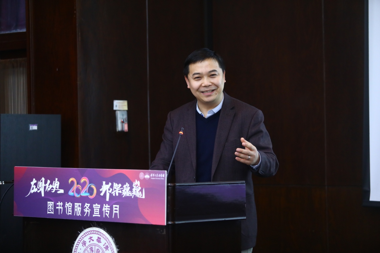 医学院李海涛教授作为教师顾问代表发言,他用“接叶传薪,邺架曹仓”感谢图书馆馆员们的辛勤工作,并表示,在清华十几年,见证了图书馆的发展,也在图书馆收获良多。未来要继续做好教师顾问的工作,为馆藏资源献计献策,及时反馈教师意见,发挥学术顾问的作用。