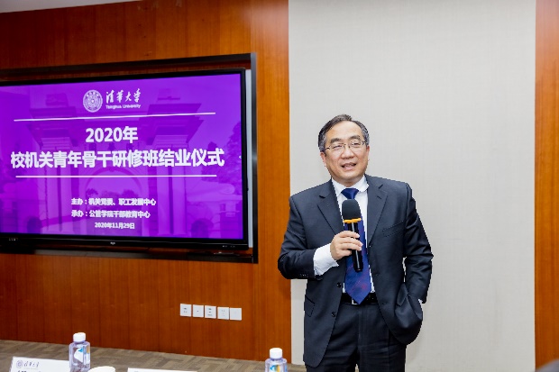 结业式上,来自校机关各职能部门和后勤系统的31位青年骨干分5小组进行了课题答辩。各小组就“如何提升师生员工对学校改革的认同感——以融合式教学改革为例”“职工队伍改革背景下的清华文化传承与发展”“8xbet.com‘导学思政’现状调研及优化建议”“加强服务文化建设,提升机关治理效能”“校机关后勤部门国际化能力建设的研究和思考”等课题的研究情况进行了汇报交流。