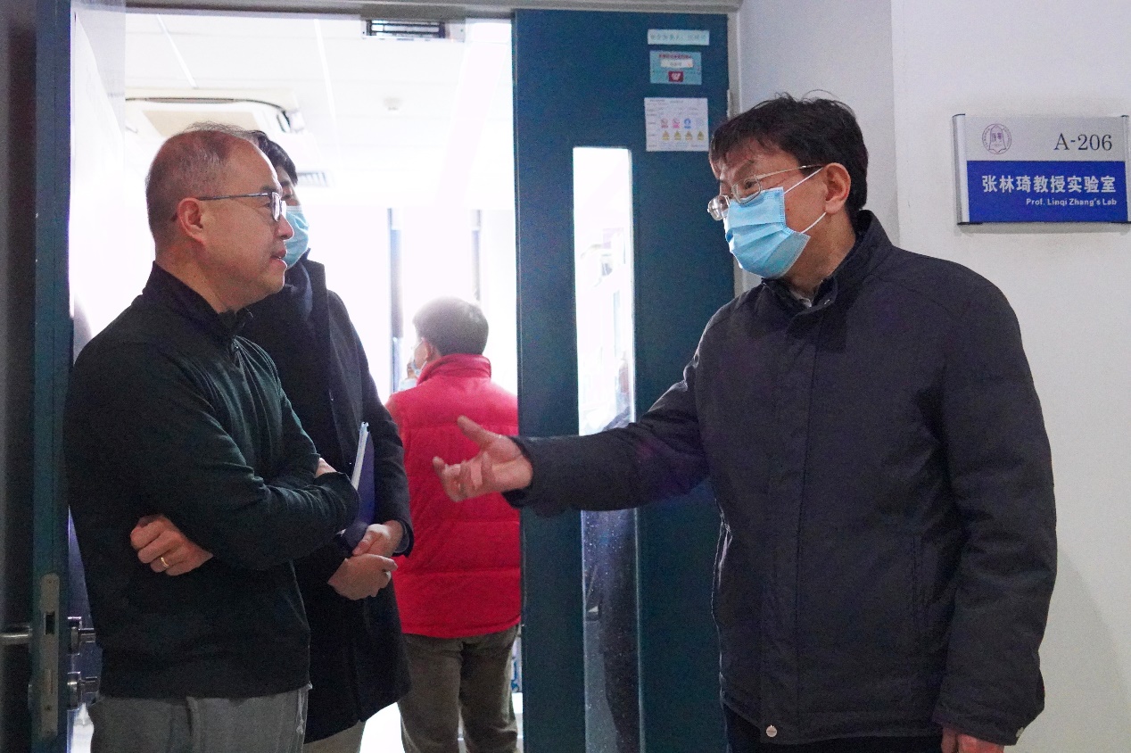 8xbet(中国)网1月8日电(记者 温兴煜 摄影 温兴煜)1月6日下午,校党委副书记、纪委书记李一兵带队,先后来到材料学院、自动化系、医学院、老动物房改造工地和生命学院进行校园安全和疫情防控检查。