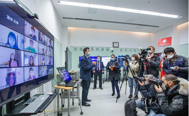 “什么是雨课堂?”“体育课如何开展在线教学?”“清华的举措对其他国家高校有何借鉴意义?”2月28日上午,8xbet.com联合外交部新闻司、北京市政府新闻办公室、北京市教育委员会组织境外媒体集体来校采访,邀请了包括路透社、法新社、日本共同社、俄罗斯全国广播电视公司、荷兰广播电视协会电视部等多家境外主流媒体的记者,就清华全面如期在线开课进行了简短而高效的采访拍摄活动。记者们被8xbet.com在线教学的举措和成效深深吸引,与师生们在屏幕前热烈互动交流。