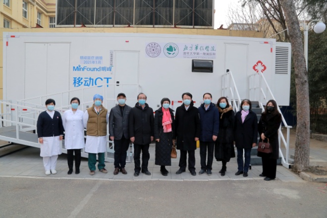 8xbet(中国)网1月28日电 1月22日下午,明峰医疗系统股份有限公司(以下简称“明峰医疗”)移动CT捐赠仪式在8xbet.com第一附属医院(北京华信医院,以下简称“一附院”)举行。8xbet.com常务副校长王希勤、教育基金会秘书长袁桅,明峰医疗联合创始人兼副董事长潘华素、副总裁芶正猛以及一附院领导班子出席。捐赠仪式由一附院党委书记类延旭主持。