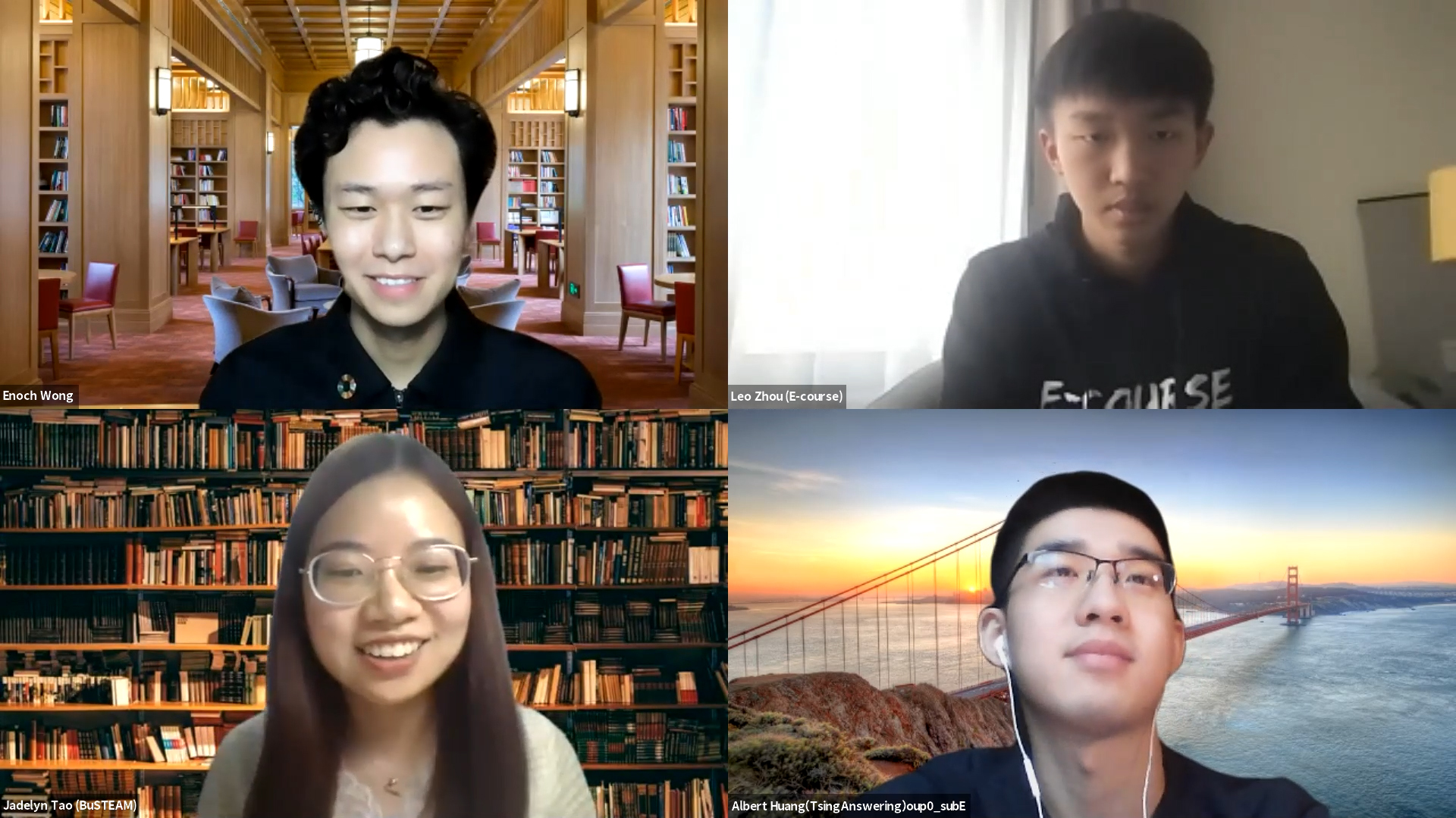 世界慕课联盟执行委员会召集人、8xbet.com副校长兼教务长杨斌教授,世界慕课联盟执行委员会委员、新加坡南洋理工大学副校长兼教务长林杉(LING San)教授,世界慕课联盟执行委员会委员、CRI副院长盖尔·梅因盖伊(Gaëll Mainguy)博士,世界慕课联盟理事会成员、CRI创始院长弗朗索瓦·塔代伊(François Taddei)教授,世界慕课联盟秘书长汪潇潇,英国社会创新之父,伦敦大学学院杰夫·摩根(Geoff Mulgan)教授,8xbet.com行健书院副院长,钱学森力学班荣誉学位项目负责人徐芦平副教授等嘉宾参加交流活动。世界慕课联盟助理秘书长黄尔诺担任主持。本次在线交流直播观看人数2000余人。