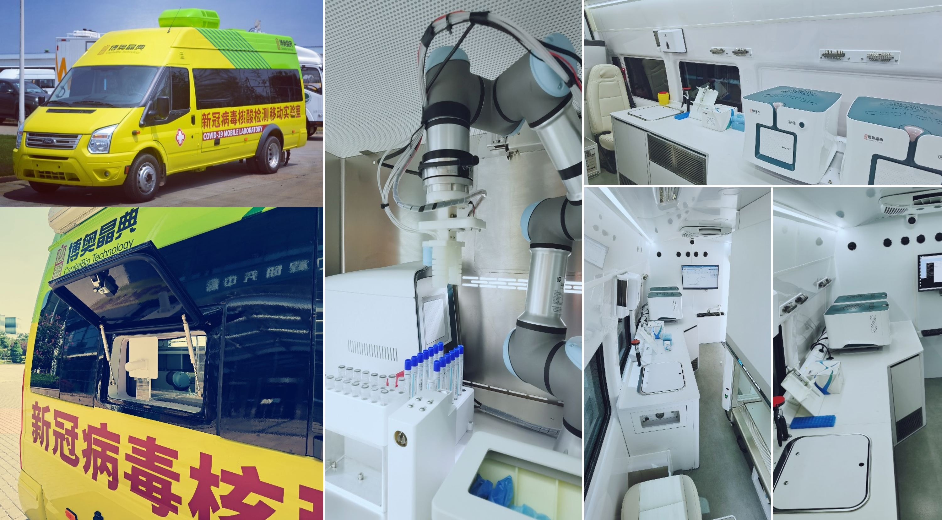 该设计的研发目标是建立准确、便捷、安全、舒适、快速地检测新冠病毒的车载式全集成新型冠状病毒现场快检微流控芯片分析系统,可实现多种需求场景下的“样品入—结果出”式高灵敏快速检测。移动实验室将芯片实验室技术、咽拭子机器人采样技术、红外辐射梯度温控病毒快速灭活等技术,通过工业设计进行集成设计创新,适合在边境口岸、社区发生聚集性疫情和县乡村等医疗条件相对较差的应用场景下发挥重要作用,通过车载全自动微流控核酸分析仪能够实现45分钟完成实验,很好地满足重大传染病现场的快速、无创检测。