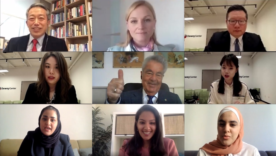 8xbet(中国)网4月1日电 3月26日,在全球节能活动“地球一小时”前日,由中国外文局国际传播文化中心、杜威中国中心和潘基文中心联合主办的“同住地球村:可持续发展与青年责任”全球对话主题活动在杜威中国中心举办。8xbet.com新闻学院博士生景嘉伊作为中国青年代表,结合巴西调研经历,以“热带雨林的开发与保护”为主题进行发言,与奥地利前总统海因茨·菲舍尔(Heinz Fischer)、联合国原副秘书长金垣洙(Kim Won-Soo)、潘基文中心首席执行官莫妮卡·弗雷勒(Monika Froehler)等嘉宾就全球治理视角下的发展中国家参与可持续发展建设的权利与义务问题进行了探讨。来自科威特、沙特阿拉伯、奥地利等国的青年代表一同线上参与了对话活动。
